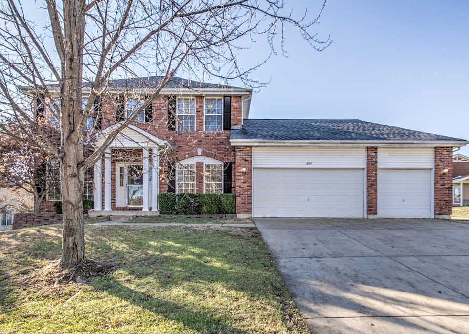 Elegant 2-story on RARE HALF-ACRE LOT near Manchester Rd shopping & restaurants! NO SUBDIVISION RESTRICTIONS! Short walk to scenic 67-acre Klamberg Conservation Area. OPEN FLOOR PLAN with 4 bedrooms, 2.5 baths, full basement (rough-in bath). 3-CAR GARAGE plus extra parking pad. Classic brick front with columned porch, architectural shingle roof, easy-care vinyl siding/soffit/fascia. WOOD FLOORS THROUGHOUT main level, living room fireplace & large BAY WINDOW. WHITE 42" kitchen cabinets, center island breakfast bar, pantry, breakfast room plus formal dining. Flexible family room/office. Convenient main floor laundry with cabinets & sink. Double doors to RELAXING MASTER SUITE with 2 closets - one WALK-IN. Dual master vanity, JETTED TUB, separate shower. Back deck overlooks massive yard, plus oversized patio - IDEAL FOR OUTDOOR ENTERTAINING. Easy access to Clarkson/340 & Manchester/100. Ellisville has ranked on BEST PLACES TO LIVE by Money Magazine & one of the SAFEST CITIES in the state!