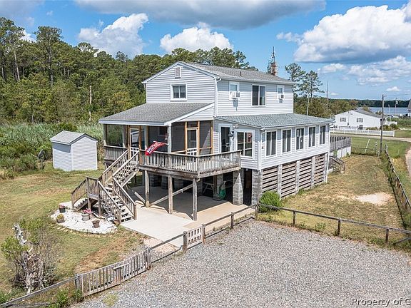 large concrete patio perfect for crab feasts and family picnics. Located within sight of the Mobjack Bay Marina for all your boating needs. Includes a guest house, outdoor shower, whole house generator, covered outdoor storage, 2 sheds and so much more!