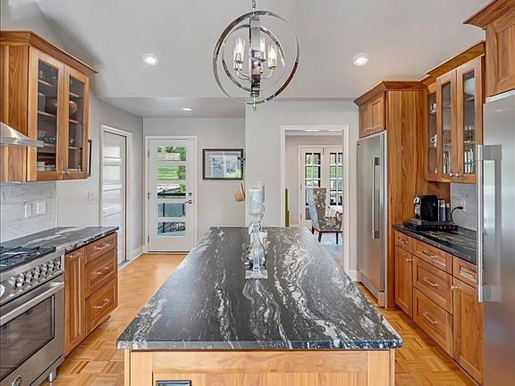 Discover modern elegance in this updated ranch home, nestled in desirable District 66. This residence has undergone a stunning transformation! Step inside to experience a kitchen that exemplifies culinary excellence. Custom walnut cabinetry, leathered granite countertops, and apron sink set the stage for a gourmet experience. High-end appliances, including a built-in refrigerator & freezer, a microwave drawer, & Bertazzoni range make this a chef's dream. The living room boasts a new gas fireplace, adding warmth & sophistication. The primary bedroom is a luxurious retreat, featuring a renovated bathroom with oversized walk-in shower. Basement remodel maximizes finished square footage, adding an additional bedroom & bathroom. Family room features custom walnut wet bar & wine storage perfect for entertaining. Remodeled laundry room is a functional masterpiece. This home is a showcase of high-quality finishes, offering a blend of comfort, style, & functionality that is truly exceptional.