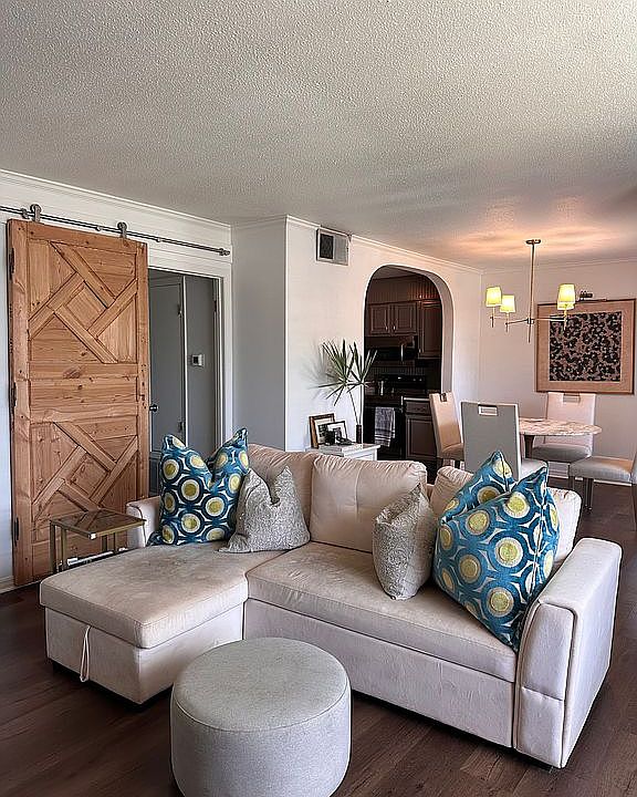 hardware, fresh paint in living room/kitchen/bathroom, and installed stunning antique Moroccan pine barn door.