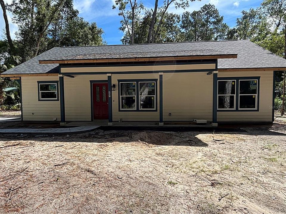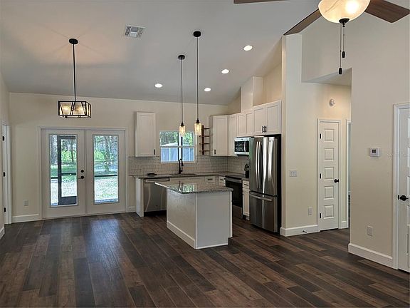 Under Construction. BRAND NEW Construction attention to detail 3bed/2bath gem with live oaks lining the half acre property and informing Micanopy's Tangerine Street. Designated one of "The 10 Best Small Towns in Florida" by Travel + Leisure Magazine (February 2023), Micanopy has kept its old town feel where neighbors wave to each other, the pace is slow, and local businesses sweeten the Town's charm. Enjoy walking the streets lined with old live oak and magnolia trees. "The town that time forgot", Florida's oldest inland town is like stepping back in time. Known for its antique shops, Blue Highway Pizza, Pearl's BBQ, and Mosswood Farm Store & Bakehouse. Micanopy is also home to both Paynes Prairie State Park and Price's Scrub State Park where you can regularly see wild horses, bison, whooping cranes, and alligators (of course). If you are looking for NEW home with modern conveniences while living in "the town that time forgot" within a short 15 minute drive to Gainesville, then this is the home for you! This home boasts two of a kind stained glass pieces on either end of the home, an open floorplan with a vaulted ceiling, lots of windows for great natural light, a screened in back porch and an open front porch, parking with electric vehicle charging, hookups for generator, energy efficient design, 9' ceilings and vaulted living room, solid wood kitchen cabinets with granite countertops and a large island with seating. Brand new stainless steel GE appliances, Hunter ceiling fans, delta plumbing fixtures, and a separate laundry room with storage closet. The master bedroom is separated from the other bedrooms and boasts a tray ceiling, walk in closet, double vanity, and custom tiled black and white shower. Feels much larger than 1250 sqft.