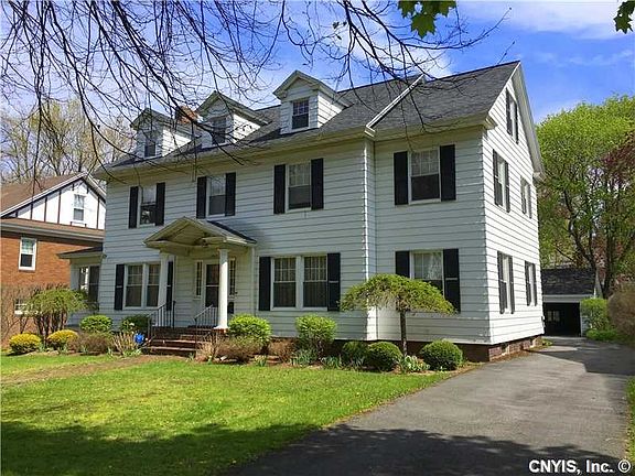 Grand two owner home in sought after neighborhood. Solid construction, beautiful flow and architectural details. Hardwood floors under carpeting. 5 bedrooms, 4 1/2 baths. Beautiful original wood burning fireplaces in formal living room and family room in basement. Side porch, back porch and deck add to the many comfortable spaces. Owner of 40+ years has maintenance and repair records, as well as original blue-prints and builder documents. Newer 1 layer roof, modern windows and furnace. Minutes to S. U., LeMoyne College, hospitals, shopping and highways.