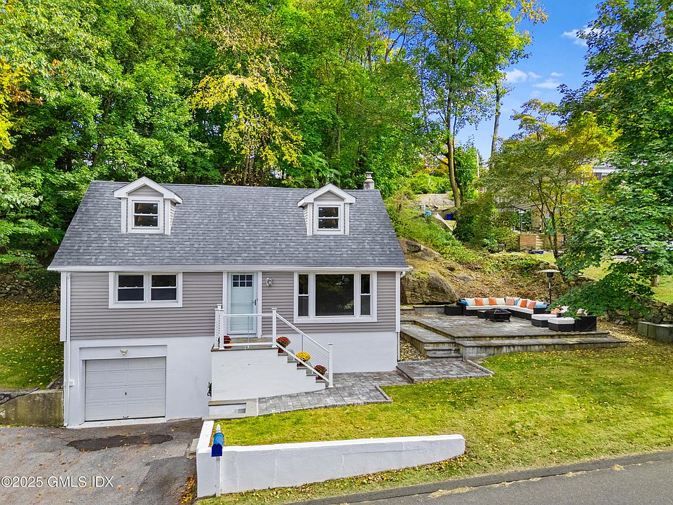 This beautifully updated four-bedroom, two-bath Cape Cod offers a rare combination of classic charm, modern upgrades, and exceptional value. The home features a remodeled kitchen with granite countertops, stainless steel appliances, and a gas range with renovated bathrooms. Central air conditioning and a gas HVAC system ensure year-round efficiency and easy living. A large stone patio provides the perfect setting for entertaining or relaxing outdoors. The attached garage adds convenience and extra storage. The lower level includes finished bonus living space and an additional space dedicated to laundry & storage. Ideally located, this home is just moments to Schools, Metro North, and the Mianus River & Park.