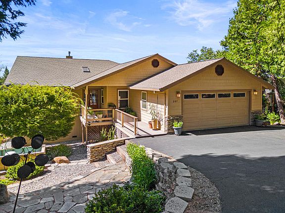 Offering $6,000 Toward Rate or Insurance + 1-Year Warranty with Purchase. Sierra Foothill views await from this exceptional retreat in an exclusive gated Firewise community. Above the Central Valley fog, yet below the heavy snowline. Exquisite solid hickory hardwood floors with Brazilian walnut borders flow seamlessly through an open floor plan featuring soaring vaulted ceilings and natural skylights. The beautifully remodeled kitchen (2021) boasts gleaming granite countertops, full backsplash, and premium GE appliances. Generac whole house generator and multi-speed whole house fan ensure ultimate comfort and security. Elegant Kichler ceiling fans throughout including garage. The expansive Trex deck with moveable awnings offers breathtaking unobstructed views. Meticulously professionally landscaped gardens feature automated 4-zone irrigation. Propane BBQ connects to main tank. Generous spacious under-house storage with concrete floors. Premier community amenities: two sparkling pools, tennis, pickleball, bocce courts, scenic hiking trails, plus community center. Gold Country adventures nearby: 24 wine tasting rooms within 5 minutes, outdoor concerts, caving, camping, water sports, golf, theater, Grape Stomp, Frog Jump festivals, plus winter sports.