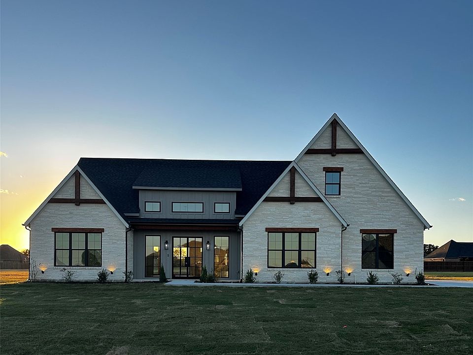 Welcome to Your Dream Home! This 2,840 sq ft Modern Farmhouse blends timeless design with Scandinavian-Inspired elegance, offering both luxury and sustainability. With 3 bedrooms, 3 bathrooms, and a versatile bonus room upstairs, that could also be used as a 4th bedroom, media room or game room. Step through the 8-ft double iron doors into the open concept floor plan. Expansive picture windows allows natural light, while a stone electric fireplace creates a warm gathering place. The spacious primary suite offers direct access to the beautiful 36x12 covered patio and backyard. Kitchen features premium LG appliances, custom cabinets finished with soft close hinges. The oversized fully insulated garage easily fits two vehicles with room left over for a workspace. Built with quality and energy efficiency in mind. Features fully encapsulated OSB sheathing, paired with foam insulation and advanced sealing techniques to minimize air infiltration. A high efficiency AC system with fresh air intake. 80 gallon heat pump water heater for home efficiency. Come take a look at this one of a kind custom home in Paradise ISD~