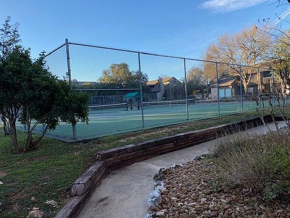 Lower level condo of T Bar M Tennis Ranch with tennis court out the back patio. Fully furnished modern up to date appliances, granite counter top, two bedrooms, two baths with a spacious living room across from kitchen bar top. The secluted condo has easy access to TX Hwy 46 and just four miles to IH-35. Close to all New Braunfels attractions. The Condo has a community pool, designated parking spot. You'll find deer grazing outside your front entry door. The windows have wooden shutters. HEB Grocery store and restaurants are two miles away. This is the best kept secret of the HIll Country.