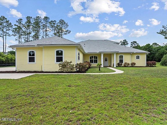 Every detail has been thought of in this immaculately maintained home, conveniently located off SR 16 in St. Augustine, FL! This is not your average ''cookie cutter'' home. Constructed in 2014, it was custom built with entertaining, functionality, and comfort in mind. (The laundry room was built using reinforced concrete and is designed to withstand up to 180 mph hurricane winds.) From the open concept floorplan to the split bedrooms, it has a space for everyone. Pull up to the oversized 1.3-acre lot, drive up the long driveway with room for multiple cars/toys/RVs, and park in the huge, all weather, 3 car garage. The interior features neutral paint, low maintenance tile and hardwood flooring throughout! (No carpet!) Downstairs there are 4 bedrooms, and 3 bathrooms, with the other bedroom and full bath being privately tucked away upstairs. The primary bedroom has multiple closets and an ensuite with walk in shower, double vanities, and soaking tub. The kitchen features custom, real wood, glass front cabinets that go to the ceiling, top of the line appliances, and granite counters. There's a walk-in pantry and the bar top is a piece of live edge wood that's been sealed to withstand everyday use. Leave the kitchen and head to the informal dining room, perfect for a game night, homework, puzzles...or head into the main gathering room. The natural light pours into the room via the wall of windows, and the vaulted ceilings lend to the airy, open feel. Need more space? Head to the enclosed back porch, featuring nonslip tiles, and overlooking the backyard pond. There's even a fenced in dog run, with new astro turf, so that even furry members of the family, have a space to call their own. We can't forget the, whole home emergency generator that kicks in automatically, if power is lost, and the reverse osmosis water filtration system. All of this is located in St. John's County, home to some of the top-rated schools in the state and UNDER recent appraised value! (3/25)