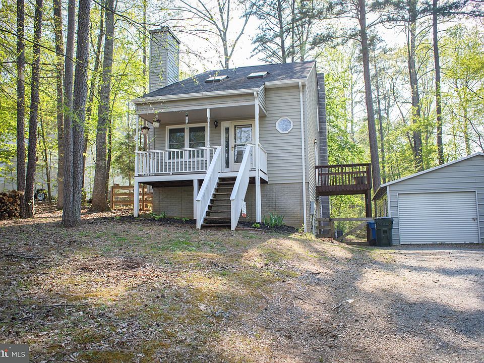 Beautiful home in lake community w/ seasonal views of lake. 3 bed, 2 bath with room to expand. Fireplace in living room wood stove in family room. Vaulted ceilings, master suite on main level, 2 bedrooms and full bath upstairs. Freshly painted. Large wooded lot and 2 car garage w/ large workshop area. Boast balcony off of dining room and deck off of master bedroom.