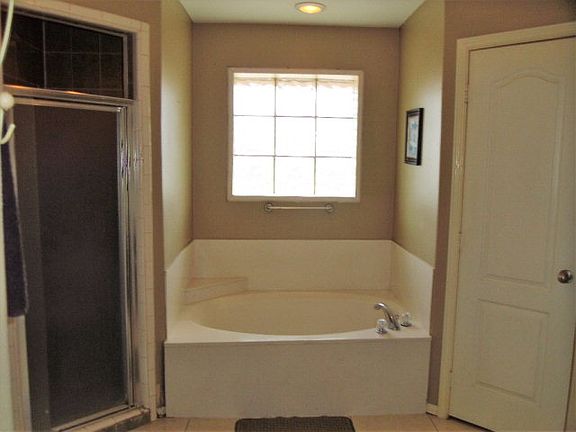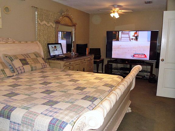 This traditional home has lots to offer! 4 bedrooms, 3 bathrooms and a lovely backyard for family BBQ's. Bright and open formal living and dining room area perfect for entertaining. Efficient kitchen, tile counter tops, lots of cabinets and storage with a spacious eat-in kitchen area. Decorative high ceilings throughout. Ceiling fans in all rooms. Master suite is spacious with his and hers walk-in closet, his and hers vanity, separate shower, separate commode and garden tub in master bath. Split bedroom design. Second, third and fourth bedroom is ample in size with large closet space. Fourth bedroom provides convenient French door access to back patio area. Must see to appreciate all the space this home has to offer. Motivated seller!