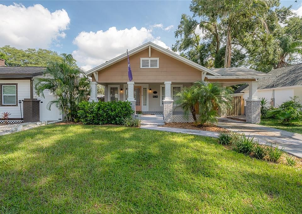 Nestled in the heart of Seminole Heights, on quiet pristine street, this delightful 1920s bungalow exudes historic charm and instant curb appeal. The inviting front porch sets a welcoming tone and leads into a bright, open floor plan accented by abundant natural light this home offers walkability and easy access to Tampa’s best spots—think the Riverwalk, Armature Works, parks, bars, and local eateries. Residents enjoy the mix of historic appeal and vibrant urban lifestyle that defines Old Seminole Heights, centrally located in Tampa this area offers both quite charm and convenience. The home offers 3 bedrooms and 2 full baths, with a split layout that offers privacy—particularly for the primary suite. Tucked away for tranquility, it includes an updated en-suite bathroom with designer tile and a walk-in shower. Kitchen: Upgraded with granite countertops, wood cabinetry, stainless steel appliances, and an eat-in nook—perfect for casual meals or socializing as meals are prepared. Set on a 5,200 sq ft lot, the home includes a custom back deck, newly installed irrigation system, and landscaping. Fully fenced with an outdoor storage shed.