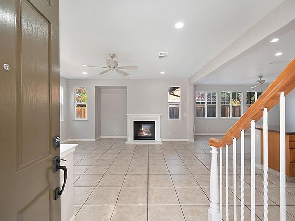 This charming corner lot home is located in a desirable Mountain House neighborhood just a short walk from Altamont Park and the TK-8 school. A warm and welcoming covered porch overlooks the extended driveway, with mature trees enhancing the inviting first impression. Inside, the open-concept living area features a cozy fireplace and a neutral color palette that effortlessly compliments any decor. The kitchen offers a functional eat-up island, granite countertops, and generous pantry storage. Fresh paint throughout pairs with durable tile and laminate flooring for easy maintenance. All bedrooms are conveniently located upstairs, along with a laundry room equipped with upper cabinets for added storage. A versatile tech niche at the stair landing provides the perfect spot for homework, remote work, or everyday browsing. The primary suite includes dual sinks, a soaking tub, and a spacious walk-in closet. Outside, the ample low-maintenance backyard features updated fencing, and an expansive concrete patio for outdoor enjoyment with minimal upkeep.