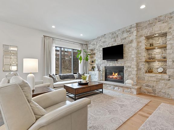 Gorgeous like-new construction townhome in the heart of downtown Wayzata! This spacious end unit offers beautiful white oak floors throughout the open floorplan; natural light-filled spaces & main-level living! Enjoy the family room with stone accent wall, fireplace & sliding door offering access to the front porch! Gourmet kitchen with large island, high-end appliances and dining room with built-in buffet + beverage fridge- ideal for entertaining! The primary suite features a spa-like bath with heated floors and walk-in closet with washer and dryer. Upper-level: large great room; office with shiplap walls; and access to the covered deck with vaulted ceiling! Additional features: junior suite + additional bedroom with murphy bed on the upper-level; exercise room; custom sauna; 3-car heated garage & elevator to access all levels! Ideally located 2 blocks from Lake Minnetonka and all the amenities Lake Street has to offer! See supplement for list of features/amenities. Truly a must see!