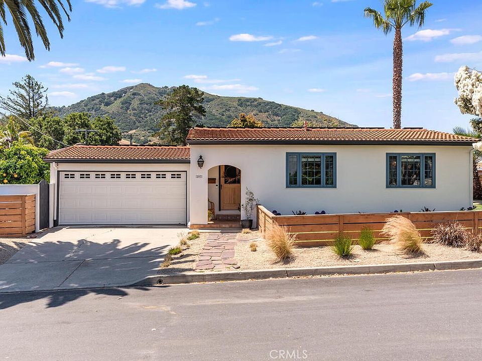 Spanish style in northwest SLO! Near Bishops Peak, is this perfectly-located home. Charming original hardwood floors throughout most of home, recent bath and kitchen remodel, and spectacular sunroom set up for entertaining. Has fully-owned solar system (6.8kW), and will transfer with closing. Recent painted exterior and interior. Located near Cal Poly, sought-after schools and hiking areas. The generous front yard area has privacy screening from street. Flexible garage space accommodates a variety of uses. Side yard behind privacy wall has abundant potential, including perhaps an ADU, building expansion, or even a gardener’s haven to create a bounty. Several citrus trees and convenient planter beds will get you started! Yard irrigation is smart sprinklers (wifi enabled).