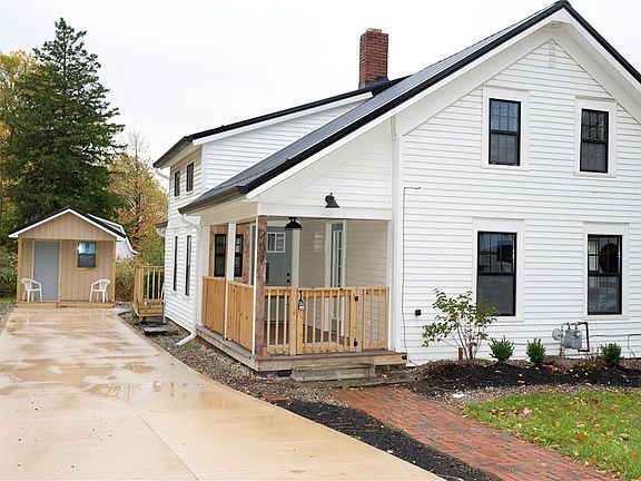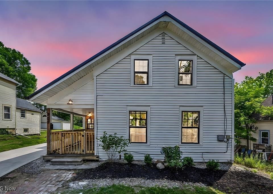 Looking for an affordable property in Chardon? Don't miss this stunning century home that has been updated with all the modern conveniences. The fully renovated colonial located in walking distance to Chardon Square! Meticulously renovated, there are 3-bedrooms, 2.5 bathrooms with the convenience of first floor living including a spacious master suite, half bath, as well as a laundry room with a new washer/dryer. NEW hardwood flooring ties the living room, dining room, kitchen and laundry room together beautifully! The fully remodeled kitchen has been equipped with new cabinetry, fixtures, and new premium LG stainless steel appliances. Entertaining is a breeze with the large dining room and living room spaces. To keep that cozy feeling of a Chardon century home, you will love the beautiful, aged original doors throughout, preserving the home's authentic character while complementing the fresh, contemporary updates. Upstairs there are two unusally large bedrooms with walk in closets and an another fully renovated full bathroom. Additionally, this home features updates that include a brand-new metal roof, new energy-efficient windows, new central air conditioning, new hot water tank, new covered side porch and a new cement driveway! All plumbing and electrical have also been replaced throughout the home during the renovation, ensuring peace of mind for years to come. As a final touch, the storage shed with porch will make a great place to grill and enjoy the property. This rare find combines the walkability and charm of Chardon's historic downtown with the comfort and reliability of a completely modernized home. Don't miss this opportunity to own a piece of Chardon's character in fully renovated, move-in ready home!