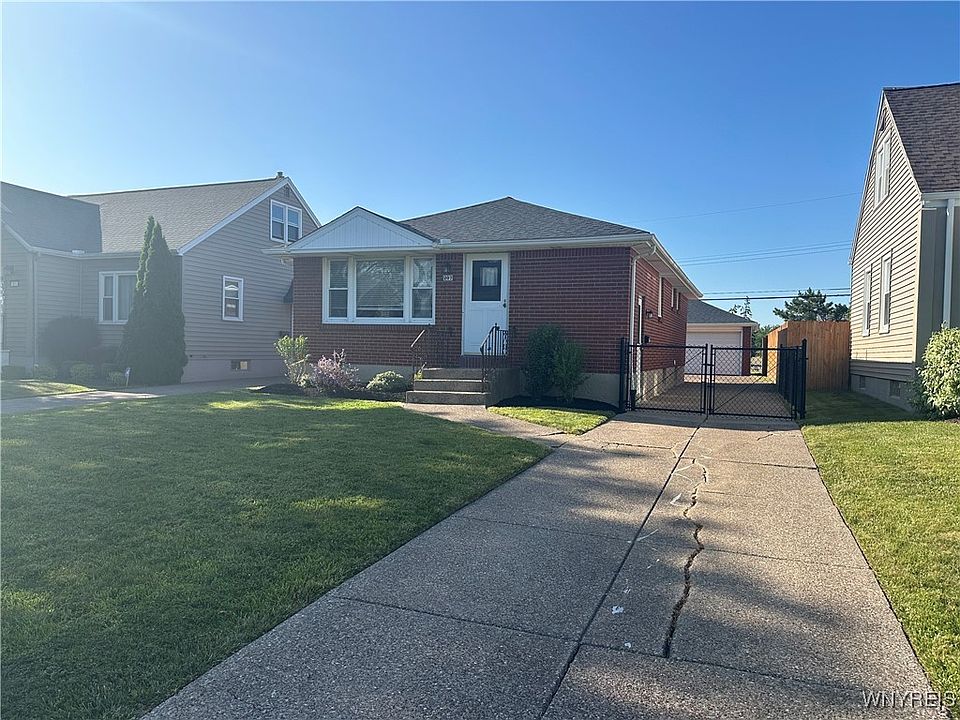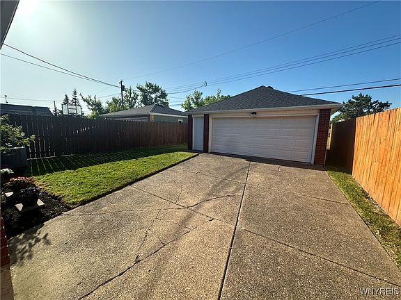 This charming, move-in ready ranch home boasts a beautifully updated interior with a stunning brick exterior. The fully fenced yard offers privacy and plenty of outdoor space. Inside, you'll find newer carpet throughout and a clean basement. The large 2-car garage provides ample room for vehicles and more. Conveniently located in Tonawanda, this home is a must-see! Furnace installed in 2024, Roof installed in 2022, all appliances included. Showings start immediately, negotiations to take place Wednesday 7/9/2025 at 7pm