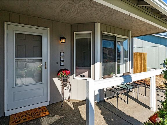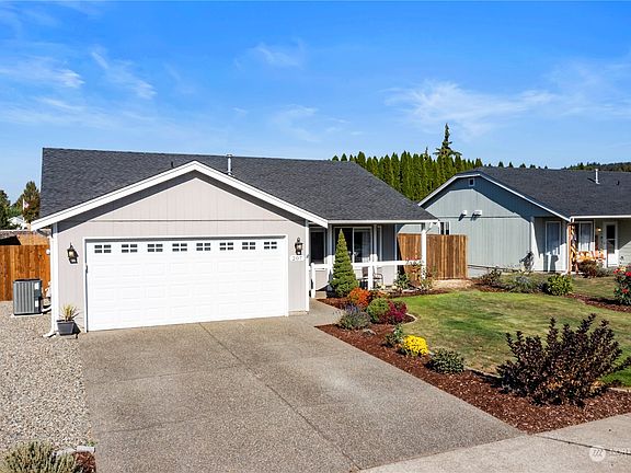 Beautiful well-maintained 3 bedroom, 2 bath rambler nestled in the quiet Village Green neighborhood. Enter into a bright living space with abundant natural light and a cozy gas fireplace. Spacious eat-in kitchen with newer stainless appliances. This lovely home has a large, fully fenced back yard with a newer shed, fruit trees, plenty of space for activities or a garden and a large partially covered deck for entertaining or relaxing. New heat pump installed in 2021 for heating efficiency and Central A/C. New roof in 2019 with 35-Year Warranty transferrable to buyer. Attached 2-car garage with pull down ladder for additional attic storage. Walking distance to schools, trails and historic downtown Orting.