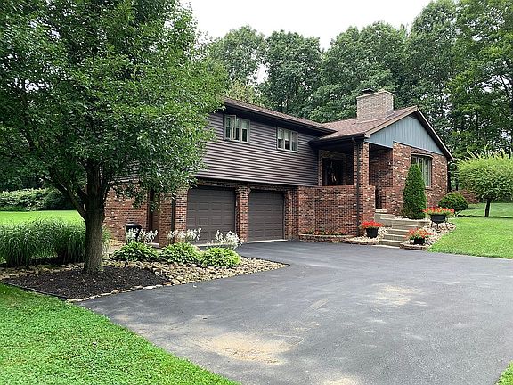 Welcome to this well-maintained, move-in ready, 3 bedroom, 2 1/2 bath home on 14.24 acres adjacent to 5,000 acres of state game lands, with the added benefits of the owner’s rights to FREE GAS & 10+ acres of mature timber. The home features a brick/vinyl exterior, modified split-entry design & unique open-concept, multi-level floor plan with lots of natural light. On the upper levels are a living room with a large bow window & brick, wood-burning fireplace; sunroom with skylights & slider that opens to a deck; dining room; large, eat-in kitchen with updated stainless appliances & slider that opens onto a covered deck; laundry room; 3 bedrooms, full bath & full en-suite in the primary bedroom. The lower level features a finished, walk-out family room with a 3-panel French door opening onto a large cement patio; half bath; integral, heated 2-car garage & tons of storage. The relaxing outdoor living space includes a very large, wrap around, 2-level wood deck. The top portion is fully covered with ceiling fans & room for outdoor dining, furniture, grill, porch swing & stairs that lead to the large, open lower portion. The nicely landscaped home is surrounded by a very large yard with level, usable green space on all sides – all adjacent to wooded property. A large shed adds even more storage. The property located in United School District provides plenty of privacy yet is only a 20 minute drive to Indiana or Blairsville.