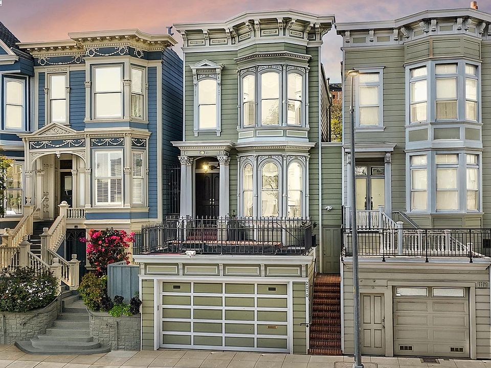 Welcome to 2070 Bush Street, a beautifully preserved Italianate Victorian capturing the timeless elegance of San Francisco’s architectural heritage. Soaring 12-foot ceilings, original hardwood floors, and three fireplaces, including beautifully preserved marble originals, showcasing the home’s craftsmanship and charm. A grand entry hall leads to the dining room, powder bath, and a chef’s kitchen with a 6-burner range, stainless-steel appliances, and French doors opening to a tranquil garden. Upstairs, the primary suite includes a walk-in closet and spa-like bath with double vanity, soaking tub, separate shower, and private deck overlooking the lush garden. The landscaped yard offers a stone patio and lawn, while the attached two-car garage provides coveted parking and storage. Near Fillmore Street, Japantown, Lafayette and Alta Plaza Parks, with a 99 Walk Score that makes it truly a Walker’s Paradise.