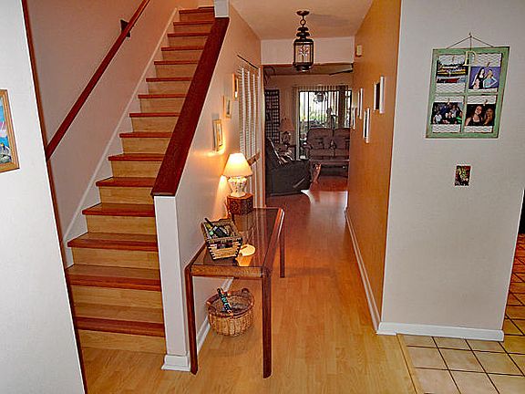 Well Maintained Townhouse with many improvements. Roof replaced in '06; AC system & water heater changed in '10; High Wind Resistance Garage door replaced in '06 with auto door opener + remote; Exterior stucco repainted & sealed in '06; Master bath remodeled with new granite counter, wood cabinet, new tile on floor & shower walls, new glass shower door in '07; All kitchen & laundry appliances 10 years new. Popcorn from ceilings removed. Sky light at top of stairs allowing plenty of natural light on the 2nd floor. Screened balcony off Master. Accordion Shutters all around including both sliders & easy prep for storm. Low monthly HOA fees includes lawn care, private road maintenance, sprinkler system & trash pick up. Priced to sell quickly so HURRY!!!