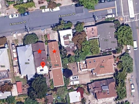 Perfectly situated in vibrant South Berkeley, this unique property features a single family home and a triplex sitting parallel with two driveways and a private yard space – all on one parcel. 2068 Emerson, the single family home, consists of a 4BD/2BA home with large basement, tuck-under garage, and rear yard – a rare opportunity for an owner occupant or investor. The triplex, 2070 Emerson consists of Suite A (2BD/1BA unit), Suite B (2BD/1BA) and Suite C (1BD/1BA). Live/own in one of Berkeley’s liveliest neighborhoods and earn income. The fabulous backyard provides convenient indoor/outdoor living, surrounded by mature landscaping. Dine al fresco, entertain, or relax with your morning coffee. Blocks away, enjoy Ashby BART, UC Berkeley, the Elmwood, Downtown Berkeley, and shop at Berkeley Bowl, Whole Foods, or the weekly farmers market.
