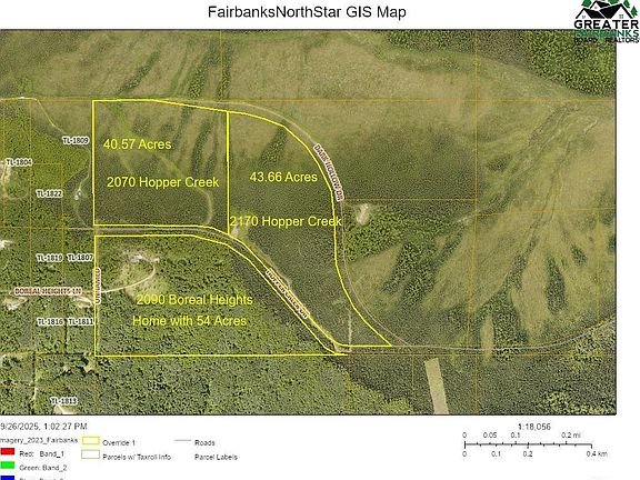 Over 40 Acres of raw land with a view and a great spot for northern lights with very little light pollution. Great spot to get a home just outside of town but still a short commute. View of Fort Knox Gold mine and hills north of the property. Seller also selling 2170 Hopper Creek for an additional 43+ Acres as well as the home on 2090 Boreal Heights with its own 54 Acres. Own a giant piece of land with exceptional privacy with a view.