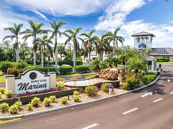 Live the ultimate lifestyle in Burnt Store Marina! This beautifully remodeled Hibiscus home floor plan delivers effortless coastal living with 2 bedrooms, 2 baths, and a 2-car garage across 1,279 square ft of A/C living area (2029 Total). Enjoy an extended length 24'6" x 8' underroof screened in rear lanai to your outdoor living area. Offered fully furnished in stylish coastal décor, the home is move-in ready and represents one of the best overall values within Burnt Store Marina. The lot backs to a lush green belt and features a privacy stone wall that provides sound buffering and transforms the backyard into a secure, secluded retreat. A rare side greenbelt adds scenic nature views so you never look directly into a neighbor’s yard. A private paver driveway and tropical landscaping frame the entry and screened porch, creating an inviting first impression. A front screened in porch leads into a welcoming foyer that flows into an open-concept great room with living and dining areas filled with natural light from abundant hurricane high wind impact windows and impact windows sliding doors. The home opens through a screened porch into a welcoming foyer and flows into an open-concept living and dining area with high cathedral ceilings and framed by many picturesque windows and sliders that face the two green belts. A realistic electric fireplace elevates the living space, adding warmth and ambiance. The kitchen integrates seamlessly with the living area and features modern cabinetry, stainless steel appliances, and two roomy pantries. The primary suite includes a French door to access the lanai, dual vanities, and a large custom glass walk-in shower. The guest suite sits beside a full bath with tub and vanity. Gorgeous Italian light toned plank tile flooring and tall baseboards run throughout, (NO Carpet) creating a cohesive, low-maintenance finish. Exceptional Value, Upgrades and Systems - New High End Premium Flat Concrete Tile Roof (Fall 2021), New A/C System (2023), Repipe Interior Potable Water System, freshly painted interiors/exteriors (2023), newer Storm high-impact wind rated hurricane windows and glass sliders. Additional upgrades include new gutters with leaf filters, Kinetico whole home water treatment system, a new disposal, new hotwater tank, remodeled Master bath & beautiful remodeled flooring throughout with base trim. Located in FEMA Zone X, outside special flood hazard areas. Inside gated Burnt Store Marina, the community features Safe Harbor Burnt Store—the largest marina in Charlotte Harbor. It offers 500+ deep-water wet slips, 450 dry storage spaces, a boat ramp, fueling station, ship’s store, maintenance services, boat rentals, and Freedom Boat Club access. Why maintain the cost of a private pool when onsite recreation only cost $500. a year which includes a beautiful heated Pool and Spa, aqua aerobics, 4 cushioned tennis courts, 8 cushioned pickleball courts, and a fitness center with 20+ machines, free weights. A scenic 27-hole executive golf course offers membership options. Enjoy 2 waterfront restaurants, a Barking club for pets. Residents enjoy getting around by golf cart and embracing an active lifestyle built around boating, golf, tennis, pickleball, and wellness. No CDD fees apply. See 74 photos & Zillow walk-through tour. Do nothing, his home has been meticulously maintained. Schedule your tour today & discover the unmatched luxury and lifestyle awaiting you at Burnt Store Marina!