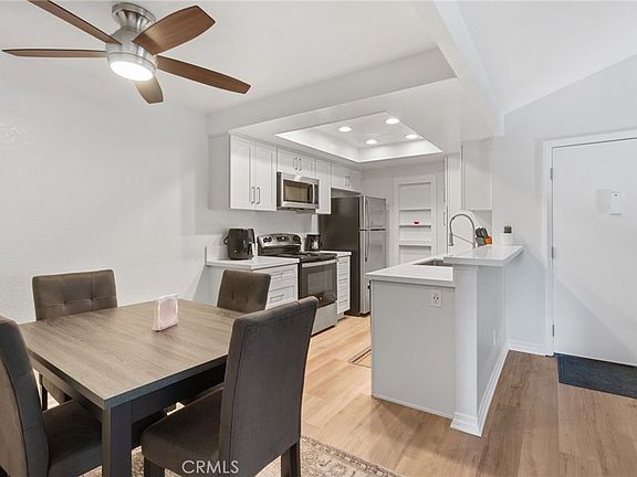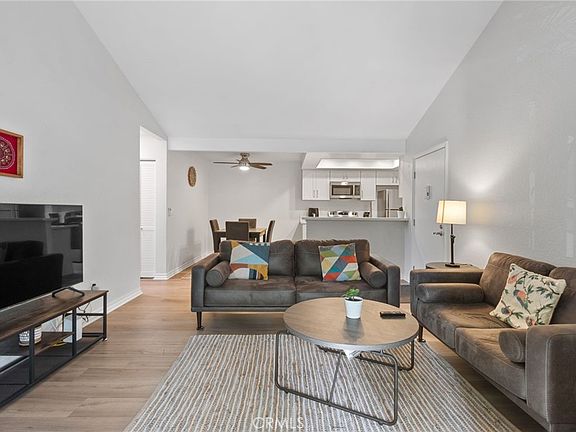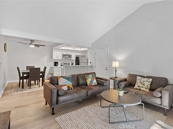 Discover the perfect blend of style, comfort, and convenience in this stunning, fully upgraded condo! Situated in a highly desirable end-unit location, this home offers 2 master bedrooms, 2 baths, and an expansive balcony with serene views. The unit includes a 1-car garage and an assigned parking space in the picturesque Pheasant Creek community, known for its tranquil streams, ponds, and mature trees. Step inside to find a bright, open living space with vaulted ceilings and direct access to the balcony, ideal for relaxing or entertaining. The completely remodeled kitchen features sleek quartz countertops, custom cabinetry, recessed lighting, a spacious sink, and all-new stainless-steel appliances, including a refrigerator, microwave, dishwasher, and stove. A breakfast bar seamlessly connects the kitchen to the living and dining areas, creating the perfect flow. The home boasts fresh paint, new laminate flooring throughout, and upgraded ceiling fans with remote controls in the dining area and bedrooms. Both bathrooms have been thoughtfully updated with modern vanities, elegant glass shower doors, new light fixtures, and resurfaced bathtubs. The convenience continues with a laundry closet on the patio, complete with extra storage space, plus a brand-new washer and dryer. Enjoy resort-style living with access to community amenities, including pools, tennis and basketball courts, and lush walking paths along the streams and ponds. The HOA covers water, trash, and exterior maintenance, making life here truly hassle-free. Located close to schools, shopping, parks, Saddleback Church, Irvine Spectrum, and local trails, this home is perfectly situated to meet all your needs. Don’t miss this opportunity—this gem won’t stay on the market for long!