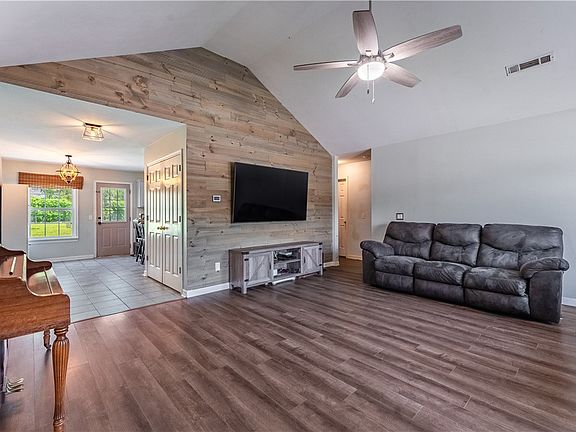 **RD eligible** This charming home with updates throughout is surrounded by the natural beauty of the Ozark Mountains, 15 minutes from Fayetteville, 20 minutes from Rogers & 20 minutes from Eureka Springs. 4 bed, 2 bath plus a bonus room, walk-in closet in primary, new roof 2023 that comes with a 50 year warranty, washer/dryer & storage building in backyard convey, new LVP & carpet in 2023, vaulted ceilings, granite countertops, new smart appliances, high speed fiber optic available. The spacious fenced in backyard has a large patio, plenty of room for storage and there's a deck with a beautiful wisteria covered pergola, peach & cherry blossom tree, all of these combined makes for a peaceful oasis. 2 minutes to White River dock, 5 minutes to local park with splash pad, dog park, pickleball courts, baseball fields and walking trails, 5 minutes from award winning Haas Hall Academy & Don Tyson School of Innovation. *$2,000 preferred lender credit or 1% rate buy down for the first 12 months*
