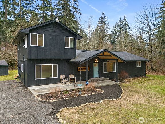 A complete remodel! Flooring, kitchen, rooms, HVAC, fixtures, interior/ exterior paint and more. This is a rare opportunity to purchase over 2400 square feet on 2.5 acres that is just minutes to everything the Northwest has to offer while feeling like your a world away when home. The Primary suite is on the main level with its own office, upstairs are two bedrooms and a full bathroom, the home has a Great Room as well as a separate Family Room, and the remodeled kitchen looks over the dining area with a very modern feel. The property has multiple outbuildings, a perfect firepit, and still plenty of space for your individual creativity.