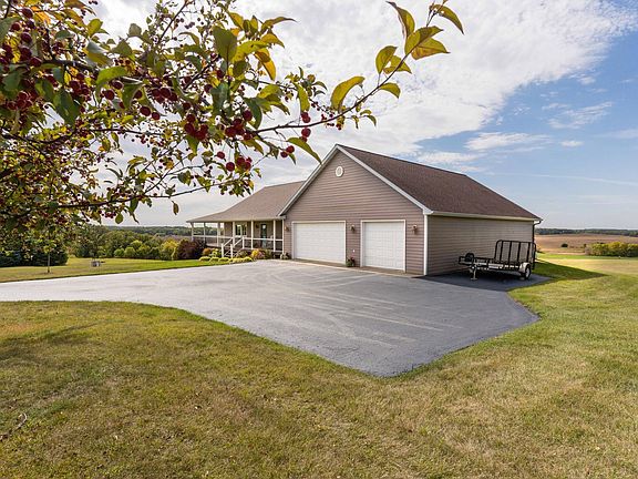 Jaw dropping views surround this country home on 10 beautiful rolling acres. The homeowners made sure to capture the landscape from multiple angles with the wrap around deck and windows. Built in 2005, this home has been very well cared for and is ready for you. 4 bedroom, 3 baths, vaulted ceiling, gas fireplace, spacious family room in the lower level and plenty of storage. The lower level walks out to the backyard. The oversized 4+ attached garage with a heated workshop. All appliances are included. $445,000.