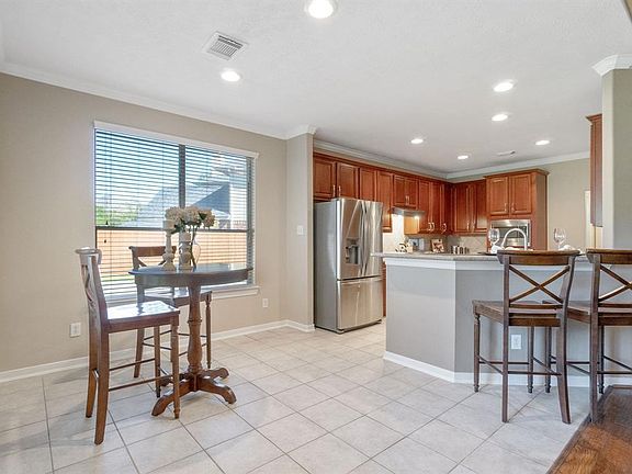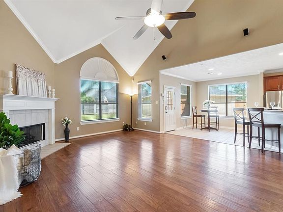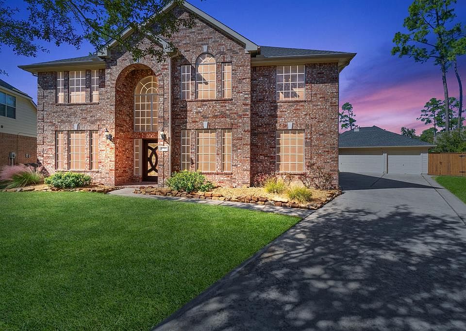 Rare find in Master Planned, Golf Course Community of WindRose. Great location on Quiet Cul de Sac in Eagle Forest boasting a Large Pool Sized Back Yard, 3 Car Detached Garage and extended Drive Way. This Floor Plan has a private Study, Formal Dining, 2 Story Living Room Open to Kitchen and Breakfast Area, Large Utility Room, Upstairs Game Room w/ Pocket Door OR 6th Bedroom, 3.5 Bathrooms and a Large Primary Suite Downstairs. All 3 Full Baths Include Brand New Vanities, Sinks, Faucets and Mirrors. Primary Suite includes New Seamless Glass Shower and a Corner Jet Tub, Fresh Paint and Huge Closet. Living, Dining and Study have wood floors and all bedrooms have newer carpet. Ceiling Fans in all Bedrooms and Solar Screens on Windows for energy efficiency. Upgraded Front Door, Newer Fencing by Garage, Brick Patio, Sprinkler System, Garage Door Openers, Kitchen Stainless Fridge Included. Enjoy Highly Rated Klein Schools, Newer Retail & Dining along with the many WindRose amenities nearby!