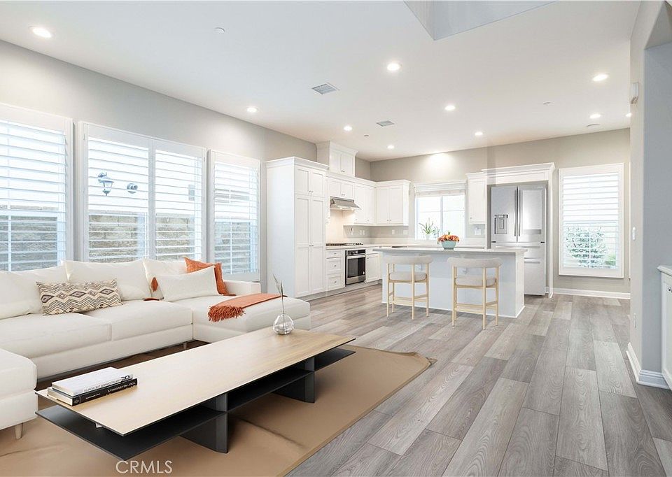 Luxury Living at the prestigious guard gated community of The Canyons at Porter Ranch – Pointe Collection- Senna Floorplan! Amenities of this must-see home built in 2019 and situated in a superior location of the community with two tone custom interior paint & upgraded insulation, include PAID OFF SOLAR PANELS, whole house WIFI package with wireless access points upstairs and downstairs, flat screen TV pre-wired in family room, main bedroom, first level bedroom and enclosed loft, custom luxury vinyl plank flooring throughout the house with custom carpet & pad on staircase, and custom shutters & blinds throughout this lovely home showcasing 2,161 square feet of living space, great curb appeal, 4 bedrooms (one bedroom & bathroom on the first level) and a spacious enclosed loft with closet, smoke detector, and ceiling fan. The loft may be utilized as a 5th bedroom, office, gym, or playroom with endless possibilities. The two-car side by side garage features fixed shelves & rafters, tankless water heater and exterior keypad. The modern gourmet kitchen features stainless steel appliances including cooktop, stove, microwave, dishwasher, trash compactor, sink and an upgraded large Caesarstone kitchen island with upgraded faucet. The kitchen overlooks the good-sized family room, and dining area leading out to your spacious private low-maintenance backyard featuring an enclosed patio with ceiling fan, pavers, artificial grass, vines & drip irrigation + gate. The second level features a large master bedroom with coffered ceilings and stylish ceiling fan with a custom barn door leading to the primary sumptuous private bathroom with large tub, separate shower and large walk-in closet. The two secondary bedrooms are also good-sized and are centrally located to the full bathroom with dual sinks, and laundry room with utility sink. The Canyons at Porter Ranch Community provide its residents with exclusive access to a resort-style recreation center with a beach entry pool, spa, splash pad, cabanas, outdoor TVs, barbecues, and Clubhouse. This community is also located across the street from the award-wining K-8 Porter Ranch Community School and is in close vicinity to the future 50-acre Porter Ranch Community Park coming soon, The Vineyards at Porter Ranch, the premier entertainment, shopping, and a dining destination in the San Fernando Valley. You’re cordially invited to call The Canyons at Porter Ranch your new home! Some pictures have been virtually staged.
