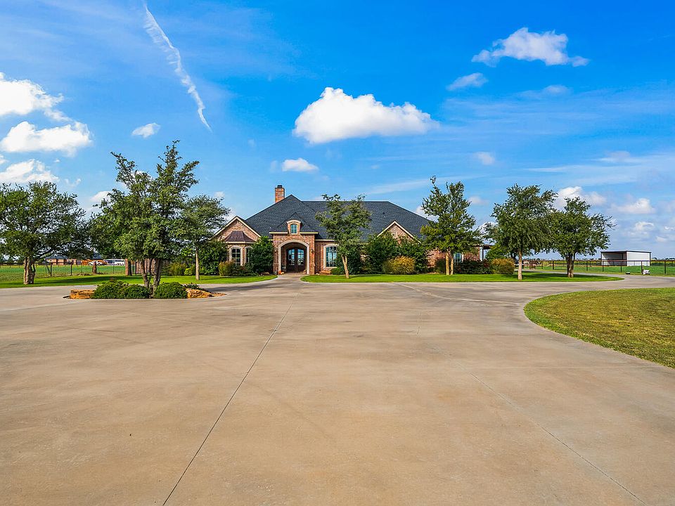 Welcome to Tierra del Prado, a showpiece estate where craftsmanship and acreage come together beautifully. From the moment you arrive, a long, elegant driveway bordered by pasture leads to a circle drive framed by beautiful greenery, mature trees, and a grand double-door entry that offers an unforgettable first impression. Inside, vaulted ceilings with exposed beams frame a stunning stone fireplace, while the chef's kitchen - anchored by a statement range hood - flows seamlessly into the open-concept living and dining areas. Picture windows capture sweeping sunset views across the lawn and open acreage, and a covered back porch with its own fireplace extends the living space outdoors. The owner's suite is a retreat of its own, featuring a barn-door entry to a spa-like bath with dual vanities, a soaking tub crowned by a chandelier, and an oversized shower with custom tile niches. The beautifully appointed walk-in closet with built-ins completes the space. A dedicated office with its own library provides a picturesque workspace, while the additional two bedrooms are tucked separately and connected by a Jack-and-Jill bath for privacy and convenience. The finished basement and walk-up attic offer impressive versatility and storage, complemented by a 4-car garage. For equestrian living, the barn is a true standout. Measuring 80x60 with an 8-inch-thick foundation, it features multiple horse stalls, each with its own drain, cut gates for flexibility, and the ability to expand to 30x10 foaling or weaning stalls. Every stall has its own night light and plug for fans or water tank heaters, creating a thoughtful and practical setup for horses' comfort. The barn runs on its own electric meter and includes a 2 HP well with a 2-inch irrigation pipe. It's paired with a 1000-gallon septic system with RV dump, plus 250-amp and 130-amp RV hookups and a 100-amp welding plug. The barn's generous lien space can accommodate RVs or motorhomes up to 16 feet tall. Additional features include a 14x30 tool room, a spacious 14x60 guest quarters/efficiency apartment with kitchen and bath above the barn, and a custom chicken coop with indoor/outdoor access and attached garden. The acreage itself is fully fenced with 2 7/8-inch pipe fencing, three 16-foot gates, and one 20-foot gate to the pasture. Set on 8 fully fenced acres in one of the area's most established neighborhoods, this estate is a rare find, an exceptional blend of elegance, equestrian function, and private country living with easy access to nearby amenities.