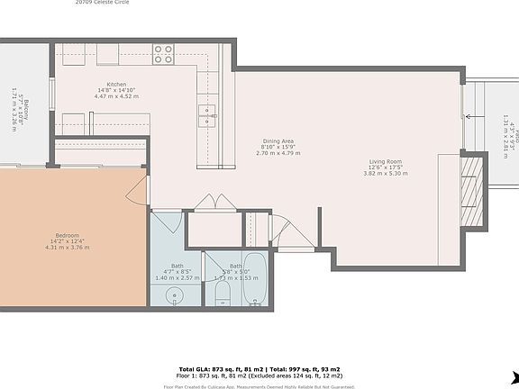 - Total interior livable area: 873 sqft