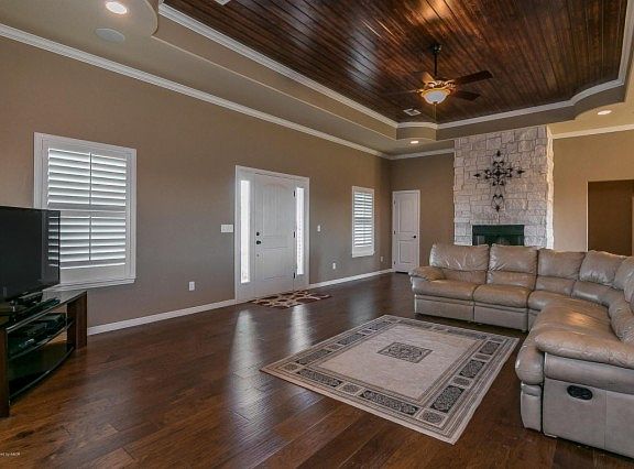 Open concept living on two acres! Plantation shutters throughout. Granite countertops. Large eat in kitchen. Refrigerator can stay with acceptable offer. Beautiful wood ceiling in living area. Lots of storage throughout. All rooms are a great size! Master bath is plumbed for bathtub addition. Nice size yard with patio. Two car attached garage with 3 car detached for added storage!