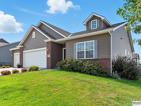 Beautifully set on a South-facing corner lot within the highly desirable Elkhorn School District, this 4-bedroom, 3-bath, 3- car ranch offers both comfort and convenience. The main level showcases an open floor plan w/ three generously sized bedrooms and full bath. The kitchen is sure to impress with plenty of cabinetry, sleek quartz counters, island and all appliances (gas range) included! Enjoy a dedicated dining space that flows effortlessly into the living area, highlighted by a gas fireplace. The primary suite provides a private escape, complete with a walk-in closet, dual sinks and shower. Convenient main floor laundry! Downstairs, the expansive lower level is designed for gatherings, featuring new carpet, family room, a 4th bedroom, updated beautiful ¾ bath, and abundant storage space. Step outside to enjoy the fully fenced backyard from the deck, complete with a sprinkler system for easy upkeep