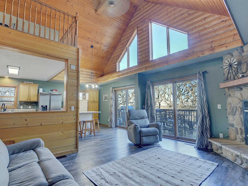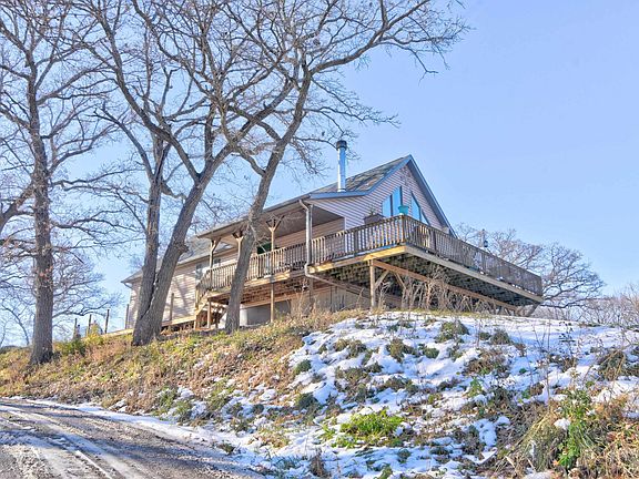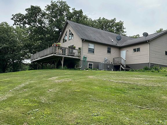 Nestled among the rolling hills of southern Estherville’s countryside, this 2.5± acre acreage offers privacy, elevated views, and the convenience of being just minutes from town. Inside, vaulted ceilings, a lofted living area, and wall-to-wall windows create the perfect space for taking in stunning Iowa sunrises. The expansive wrap-around deck invites you to entertain guests or simply relax and enjoy the peaceful natural surroundings. The open-concept main level features a spacious kitchen with stainless steel appliances, a large center island, and a cozy fireplace accented with natural stone. The primary suite includes a generous walk-through closet and a full bath with a jetted tub, while a second bedroom and another full bath complete the main floor. You'll appreciate the quality of the poured-concrete lower level which adds even more living space, offering two additional bedrooms, a ¾ bath, a family room, and laundry area. At the top of the property, there’s room to expand the one-car garage or add outbuildings for extra storage. Come experience why country living truly is the best living!
