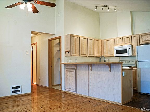Fall in love with this single-level, 2 bedroom, 1.75 bath condominium within walking distance to the heart of Ferndale! This top-floor end unit features vaulted ceilings, a large primary bedroom with en suite three quarter bath, Australian Cypress flooring throughout, and indirect lighting for ambiance. The separate utility room with washer and dryer in the unit is super convenient. Plus it has it's own two-car garage with two large storage closets - an uncommon and highly sought after feature! And the roof is just a year old for added peace of mind. Don't miss out on this bright and open unit!