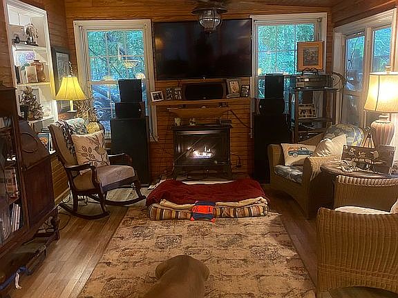 For sale is a 2/3 bedroom, 2 1/2 bath one and a half story, 1550 sq ft log sided water front lake home on Lake Marion in the Wyboo Creek area. Situated on 1.4 acres. Lots of privacy ! Open floor plan with lots of wood. New metal roof, new HVAC, kitchen updated two years ago with granite counter top and LVT flooring. 130 ft of waterfront. Amenities to include, double carport, above ground pool right off the back porch and deck. Also on the deck is a covered complete outdoor kitchen with tankless hot water heater with outdoor shower, fenced in yard,1600 sq ft insulated pole shop building Wired for 220 volts, a 450 sq ft 2 room man cave with all ruff cut cypress walls in back of shop which easily could be converted to a small apartment. Grain bin gazebo, 300 sq ft green house and a 48 sq ft green house, 12 x 24 ft boat shed. Covered dock with electric, also included is a 24 ft pontoon boat with a 70 hp Suzuki 4 stroke motor and trailer. Mor photos upon request.