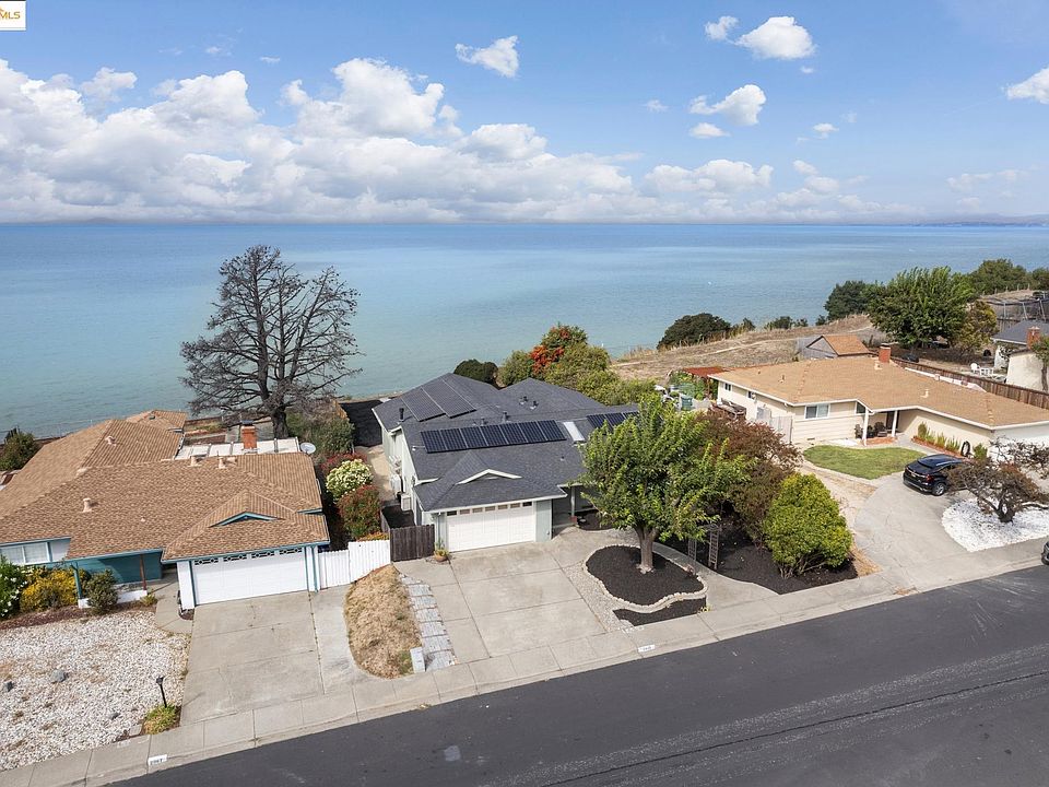 Energy-Efficient Bayfront Retreat With Breathtaking Views! Discover this rare 4BD/2BA home with Unobstructed Views of San Pablo Bay, Point Pinole, and Mt. Tam. This tastefully renovated, single-level home combines comfort, style, and convenience. Soaring ceilings, exposed beams, Regency Gas Fireplace, and a dramatic wall of windows fill the open-concept great-room with warmth and natural light, framing the stunning view perfectly. The living room and the primary suite flows seamlessly out to the flagstone patio perfect for relaxing, entertaining, and watching the spectacular Seabirds and Sunsets. The updated kitchen features porcelain counters, custom cabinetry, and newer appliances. The spacious primary suite has an Incredible Bay View, and all 4 bedrooms offer comfort and flexibility. Significant energy-saving upgrades include solar panels, EV charging station, heat pump with central A/C, newer electric water heater, attic insulation, and some upgraded windows. It is set on a large lot in a peaceful neighborhood with direct access to shoreline parks, trails, and bike paths yet just minutes to dining, shopping, BART, and the Richmond Ferry. Experience the perfect blend of modern efficiency, natural beauty, and bayfront tranquility! Your private waterfront retreat awaits!