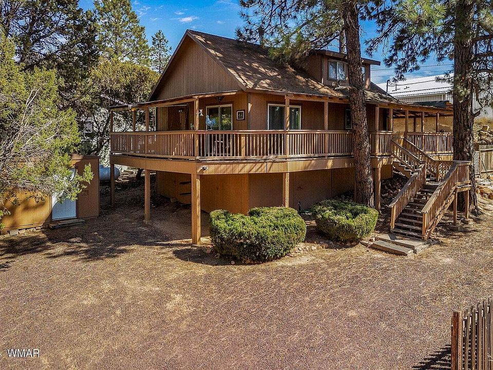 Cabin in the woods. This is all you need. Surrounded by ponderosa pine trees. A mountain retreat with spacious outdoor living. The large wrap around deck is large and perfect to enjoy the great outdoors. The open floor plan has the vaulted ceiling, and the wood stove provides endless enjoyment. Move right in with remodeled baths and kitchen and newer flooring. Laundry room with half bath, a storage shed and plenty of yard space. So much to mention.