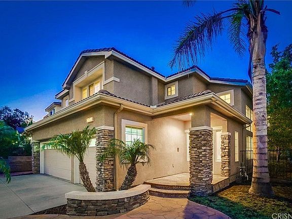Exquisite 5 bedroom, 3 bath and 3 car garage home in 24-hour guard gated sorrento community available for rent from mid July. This home offers stunning open floor plan, high ceilings, circular staircase. Marble in living room, dining room and hallway, lots of natural light. Spacious family room with romantic fireplace, rich dark wood built-in entertainment niche and wood laminate floors. Kitchen offers granite counters & center island, stainless steel built-in refrigerator, dark wood cabinets and generous pantry with breakfast area. Downstairs has 1 bedroom and guest bath with shower. Upstairs has a beautiful master suite with 2 spacious walk-in closets, luxurious master bath with vanity, dual sinks, oval tub with shower and three more spacious bedrooms. Backyard has patio area and grass play area. Sorrento community offers 2 swimming pools, 2 spas and 2 kids playarea. Belongs to much in demand K-8 Porter Ranch Community school w/great API scores. Nearby Parks, Restaurants. Close to Vineyard shopping center along with many restaurants, CSUN, shopping malls, porter valley country club/golf course, easy fwy access to downtown LA. A spacious 3 car garage offers plenty of storage space, laundry room. 2 year lease required.