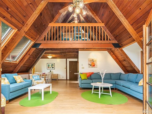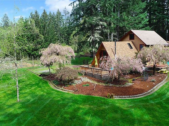 Enchanting west side home! Majestic evergreen forests surround the gorgeous sun-filled lawns, gardens and orchards of this five-acre island property. A quiet, level country driveway leads to this dreamy island home! Here, you'll enjoy stylish Northwest living amid an inviting open floor plan complemented by soaring ceilings and generous wood finishes. Wood stoves warm the living and family rooms, while banks of windows fill the home with natural light. A bedroom and bath are on the main floor. The upper floor loft is ideal for play space or office, and two more bedrooms plus a 3/4 bath are upstairs. The upper bedrooms open to a balcony overlooking the picture-perfect surroundings! French doors lead to a large deck surrounded by gardens. Play croquet on the sunny, level lawns, keep your horse in the fenced pastures with loafing shed, and plan an afternoon ride on the miles of connected trails! A chicken coop is in place, storage sheds - there's even a playhouse hideaway in the forest. Superbly maintained inside and out; start enjoying the magic of island living today!