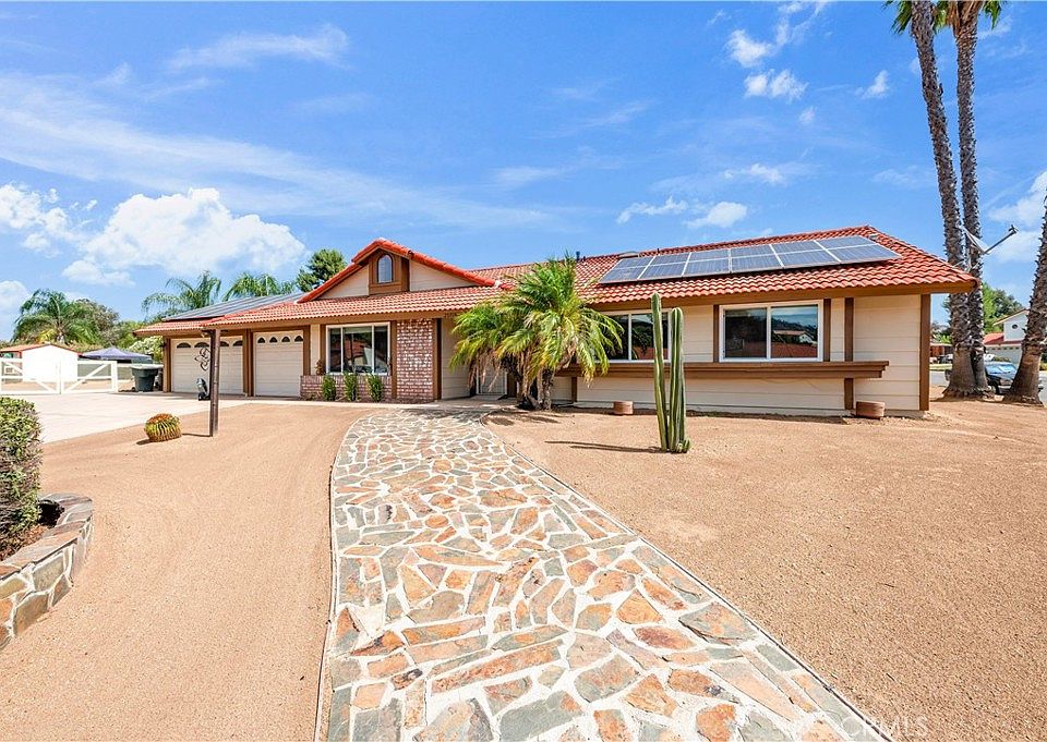 New Price.........Looking for a home that checks off all the boxes, look no further. The curb appeal on this home is hard to miss. These 4 bedrooms are oversize and all come with very large closets. You walk into the very comfortable living room, the kitchen has beautiful Corian counter tops. The family is perfect for kicking back or use it for your dining area. The back yard is like it's very own oasis, plenty of room to party, tons of seating/game area/BBQ/ Covered patio and of course the pool. This is a lot that boasts over 18,000 sq ft. Some of the yard is being used as a RC racetrack but has the opportunity to be a ADU and ADU jr. You want to split the lot and build another home, this neighborhood allows it (double check with the county please) Don't miss this home in one of the nicest communities in Wildomar.
