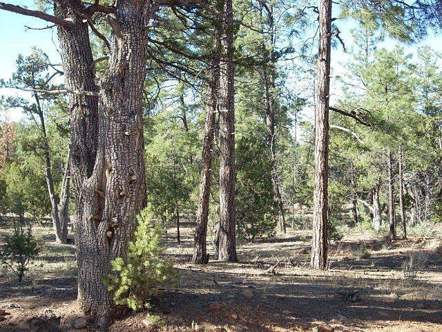 Beautiful towering Ponderosa Pines adorn this heavily treed 1.11 acre home site. Ready for your custom cabin with power and shared well and site built homes only with the protection of deed restrictions without the cost of an active HOA. Buy now and build later. Properties like this are going fast!