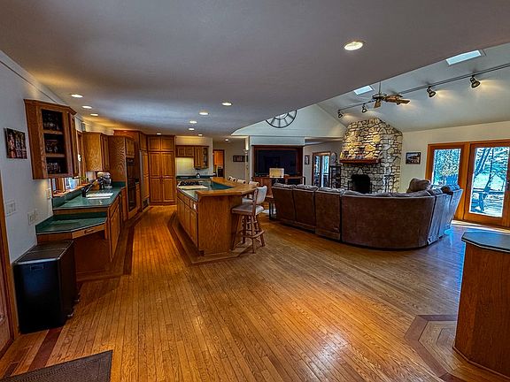 Enjoy 160' of stunning Lake Michigan frontage in this beautifully designed waterfront home. The open-concept living space features custom hardwood floors, a spacious island with built-in gas range, double ovens, natural wood cabinetry, and a wet bar with wine storage. A stone fireplace anchors the living area, while a wall of windows in the dining room leads to a covered porch with an outdoor fireplace. The expansive primary suite offers a sitting area, built-ins, full bath, and a walk-in closet with second sink. Enjoy the outdoor fireplace on the expansive Ipe wood deck. A heated conservatory with hot tub, additional bedrooms, bonus rooms, and a large attached garage with 32'x28' workshop complete this exceptional property.