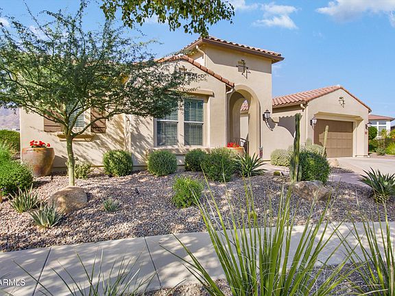 Nestled in the desirable 55+ Victory at Verrado community, this stunning home! This Splendor floorplan by David Weekley is a rare home on model row that offers an array of luxurious features plus breathtaking golf course and mountain views. The view might be one of the very best views in the Phoenix area!
