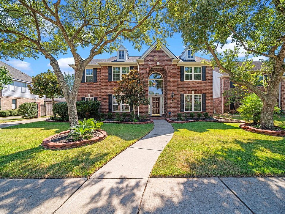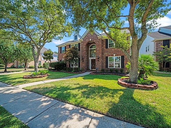 Beautifully maintained two-story brick home in sought-after Kelliwood Place. This spacious layout offers formal dining and a flexible front room ideal for a study or sitting area. The kitchen features granite countertops, center island, and breakfast nook with views of the backyard. Living room includes high ceilings, wood floors, and a gas fireplace. The primary suite is located downstairs with a large bath, dual vanities, soaking tub, and walk-in shower. Upstairs offers three bedrooms, a full bath, and a large game room. Enjoy a private backyard retreat with pool, spa, and waterfall feature, cool deck patio, iron security fence protecting driveway. Conveniently located near top-rated schools, parks, shopping, and dining.