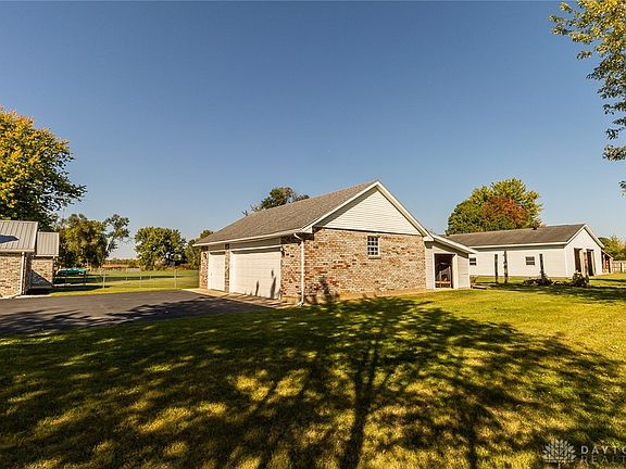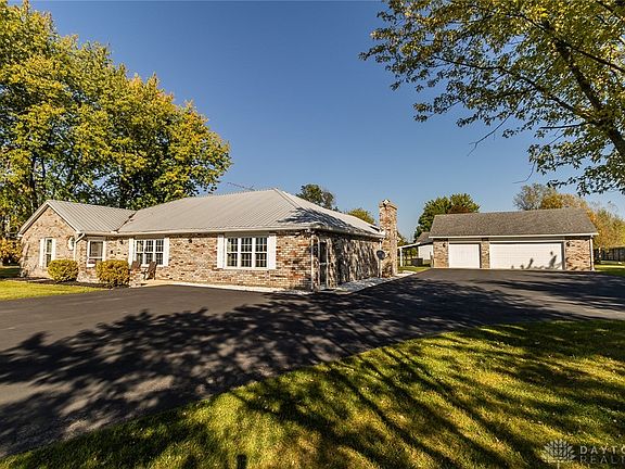 Stunning custom-built 4 bedroom/2 full bath country home boasts 2,892 sq ft and is an ideal choice for anyone who desires more space. In a rural setting within Franklin Monroe School District with over 3 ACRES of land and outbuildings, this property could serve as a hobby farm, homesteading option, multi-generational living arrangement, or location for your home-based business. The brick-ranch home is much bigger than you would expect. The front entry of the home leads to the renovated kitchen, which boasts granite counters, an eat-at island, and ample counter/cabinet space. All appliances stay, including the washer & dryer! The cozy breakfast room, located off the kitchen, is open to the living room, which features a gas brick-surround fireplace. Additionally, there is a massive finished rec room/family room that is separated, giving you two huge living spaces. This house is perfect for hosting and entertaining! Down the hall, there is a private primary bedroom with an en suite bath and a walk-in closet. There are also three additional bedrooms and a second full guest bathroom. The detached oversized 3-car garage provides amazing storage and a covered side patio. Fenced-in backyard area w/ a concrete patio. The 40x60 barn offers 2 overhead doors - providing great space for even more storage or livestock, and a partially finished area that could be completed for a guest house/apartment/home office. The large open area of land in the back could be used for pasture or an awesome garden space! Mature trees provide great shade & enhance the private & peaceful landscape. Updates that have happened over the last 9 years: metal roof, windows, HVAC system, new garage door, & driveway (resealed in fall of 22). A John Deere zero-turn mower is negotiable. This property offers so much opportunity, don't miss out! If you're interested in this property, please call to schedule your tour today. THIS PROPERTY IS LOCATED IN DARKE COUNTY.