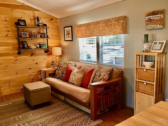 This 1999 Canterbury park RV has been updated and is beautifully decorated. This front kitchen model that has new cabinets, stainless appliances, plenty of granite countertop space and a movable island. Newer metal roof, newer flooring, bead board ceiling and a fresh coat of paint has this unit looking better than new. The 8X24 3 season room has additional cabinets that offer plenty of storage, a futon sleeper with a privacy curtain, a festive dining set and a separate air conditioning unit. You will never run out of hot water with the Rinnai on demand water heater. The seasonal resort is located close to Drakes Island Beach, Kennebunkport, fine area restaurants and a short drive north to the less congested Kennebunk shopping area. The resort fee is $5,000 per season and includes water, sewer, cable & internet. Seasonal property, no rentals of the unit.